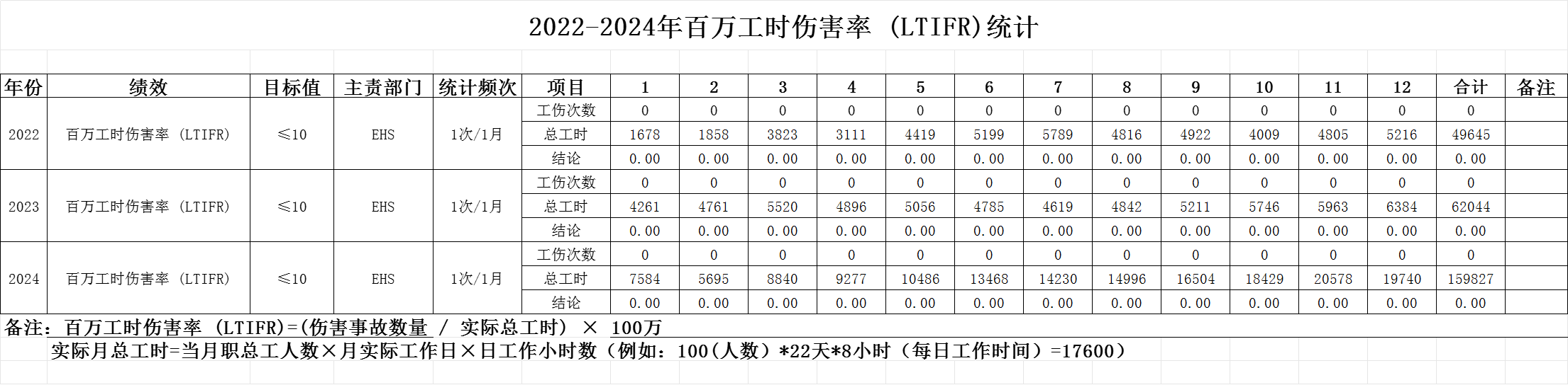 2022-2024年百万工时伤害率 (LTIFR)统计
