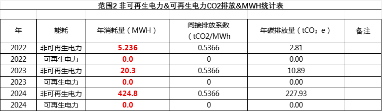 非可再生电力&可再生电力CO2排放&MWH统计表