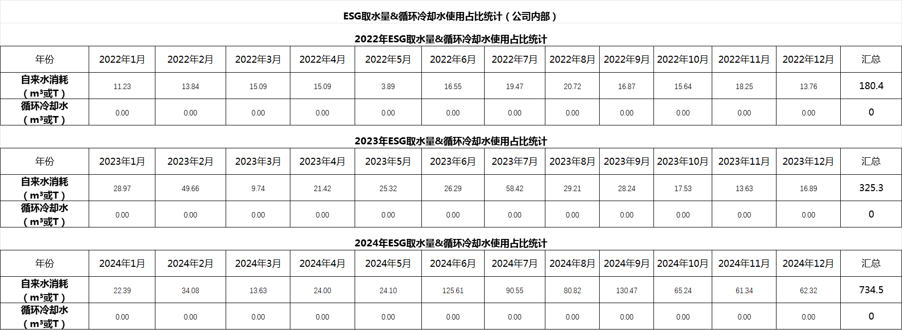 ESG取水量&循环冷却水使用占比统计(公司内部)